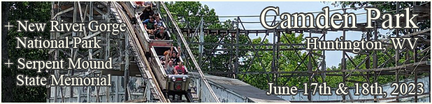 Sep. 15 – I like weird old parks. West Virginia has an unexpected gem in both those categories in Camden Park. This turn-of-the-century trolley park is literally built around an Indian burial mound, and has one of the best old school spook houses around. In addition to the rides, today’s update also includes some dispatches from along the country roads of West Virginia and southern Ohio as they get closer to taking me home.